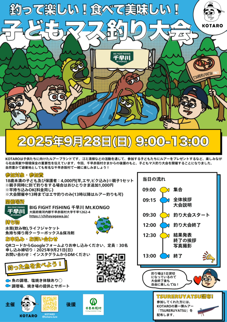 今回、千早赤阪村さまからの後援のもと、子どもマス釣り大会を開催することになりました。